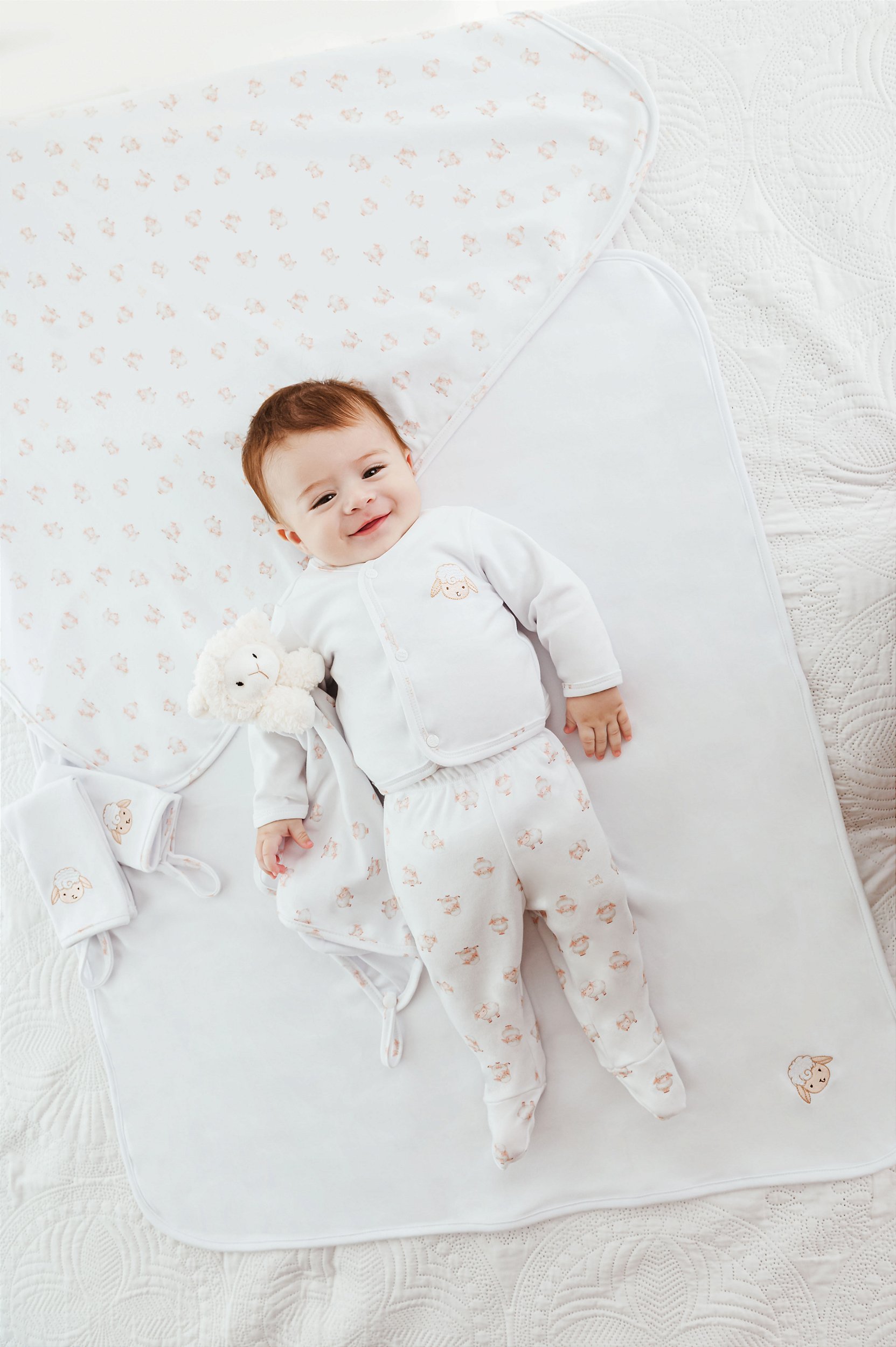 CONJUNTO PAGÃO, BODY MANGA CURTA E CASACO TEMA OVELHINHA MINI BEAR