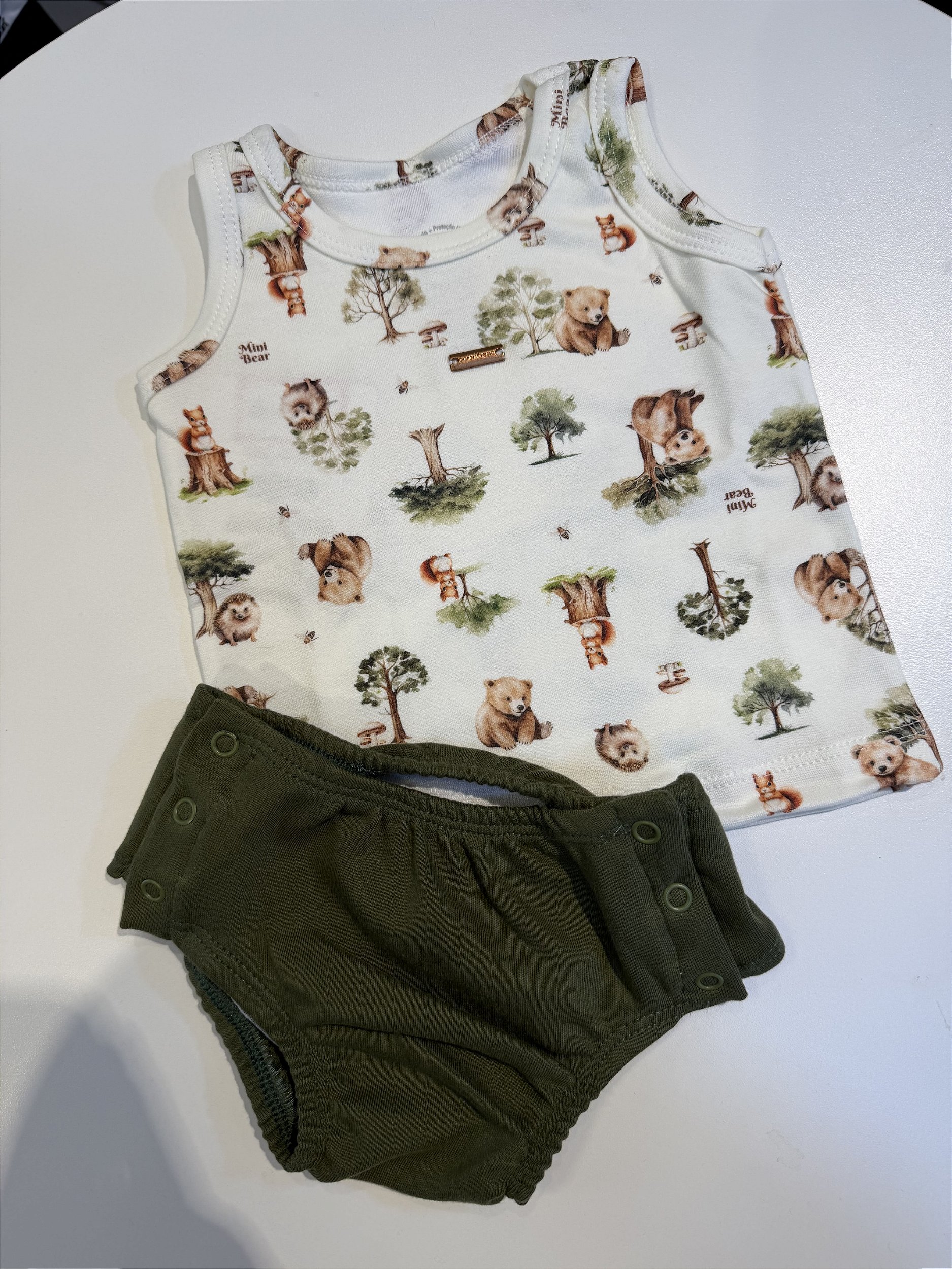 CONJUNTO REGATA COM TAPA FRALDA TEMA BOSQUE MINI BEAR