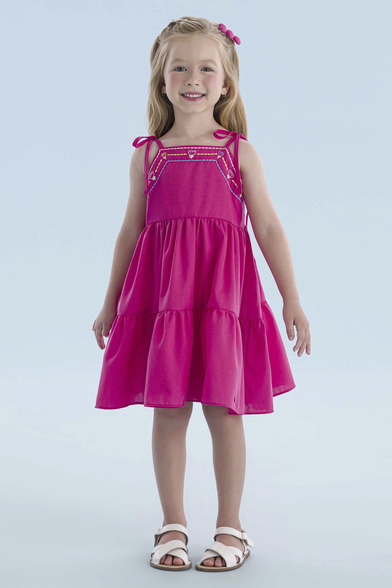 VESTIDO EM TRICOLINE COM AMARRAÇÃO NOS OMBROS MON SUCRÉ é uma ótima opção para passeios, eventos, shopping, aniversário, um almoço ou até mesmo um jantar, além de ser muito leve, ele possui um tecido em tricoline super confortável e de extrema qualidade, estampas bordadas e amarrações nos ombros e costas super delicados dando destaque e estilo à peça. Com cores vibrantes que estão super em alta, na Pequeninos Baby Kids você encontra na opção rosa escuro.